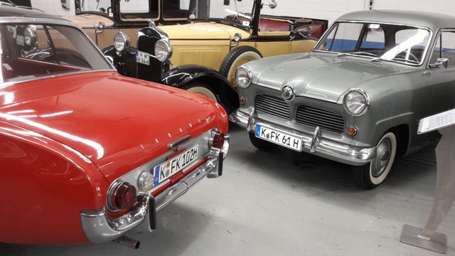 Op vrijdag reisden we dan uiteindelijk af naar Keulen. Een bus vol EFCN-leden met aanhang stapte op in Maarsbergen en Cuijk. Mooi op tijd bereikten we de Fordfabriek in Keulen. Na ontvangst en een film mochten we plaatsnemen in een treintje en werden we rondgeleid door de fabriek, langs zoveel mogelijk punten waar nog wel gewerkt werd. Tijdens de rondleiding veronschuldigde de gids zich meerdere malen dat er niet overal gewerkt werd en dat we iets later bij de kantine zouden aankomen. Duitse punktlichkeit! Na de toer door de fabriek kregen we een heerlijke maaltijd op de fabriek, waarbij het nog even onduidelijk was hoe en wie er moest betalen, maar dat werd uiteindelijk ook geregeld. Daarna was het tijd voor de "Heilige Hallen", de collectie Fords die de fabriek heeft verzameld, met de nadruk op modellen die in Keulen zijn gebouwd. We kregen een uitgebreide rondleiding en de Duitse gids sprak Nederlands, wat alles nog makkelijker maakte. Op verzoek mocht een motorkap open en werd er uitgebreid uitleg gegeven. Heel leuk om dit mee te maken, ondanks dat de temperatuur in de hal aan de hoge kant was. Waarschijnlijk om de auto's in goede conditie te houden. Na het maken van wat groepsfoto's op het terrein van de fabriek gingen we met de bus naar het hotel. Maar niet voordat we een korte blik op de oude Deutz-fabrieken hadden geworpen en Motorworld hadden bezocht. Dit laatste was met name leuk door de collectie auto's uit de priveverzameling van Michael Schumacher. Zijn 7-UP Jordan, Bennetons en Ferrari's stonden hier opgesteld, samen met overalls, bekers en andere leuke zaken. In de plaatselijke pizzaria bij het hotel aten Carl en ik samen met een aantal andere groepsgenoten lekker wat warms. De eigenaar had gelijk de omzet van een heel weekend binnen. Na een korte wandeling zocht ik mijn bedje op. Zondag was er een bezoek aan het Rurh-museum nabij Essen, een enorm complex wat is overgebleven van de rijke historie van de industriele revolutie. We hadden te weinig tijd om alles te bekijken, maar we hebben toch een goede indruk gekregen. De middag werd besteed aan de binnenstad van Essen. Arie van Tussenbroek, EFCN-lid en onze buschauffeur bracht ons veilig weer in Cuijk en een aantal andere deelnemers in Maasbergen. Het was een geslaagd weekend en heel veel dank Harrie voor je doorzettingsvermogen en Arie voor het rijden van de bus. ![]() P7a in restauratie. ![]() P7B. ![]() Escort en Taunus FK pick-up. ![]() Esort. ![]() De "Heilige Hallen" bij Ford Koln. ![]() Ford Taunus P6 en Fiesta Mk1. ![]() Een rijtje vooroorlogse Fords. ![]() Tweemaal Y-Ford. ![]() Eifel cabriolet. ![]() Ongerestaureerde schuurvondsten. ![]() Wereldbolletje en Badkuip. ![]() Taunus TC2. ![]() Interieur P5. ![]() Carl inspecteert de motorruimte van een P4. "Ah, zo hoort het dus.." ![]() P4 coupe. ![]() ![]() ![]() Transit FK brandweerwagen. ![]() Granada. ![]() ![]() ![]() ![]() Granada. ![]() Mustand in Polizei uitmonstering. ![]() ![]() Harrie in het midden en onze gidsen van Ford naast hem. ![]() Een Transit FK in het wild. ![]() Deutz-fabrieken, waarvan een groot deel gesloopt wordt. ![]() Maar gelukkig niet alles. ![]() Benneton 1994. ![]() Veel dure sportwagens in Motorworld. ![]() Jordan uit 1991. ![]() Bennton 1995 ![]() Benneton 1992 of 1993. ![]() Ferrari met in de achtergrond de overalls van Schumacher. ![]() Van elk jaar stond er een auto. ![]() Driemaal Pagode achter een aantal 911's. ![]() Veel Mercedes-Benz 190 SL. ![]() Hotel. ![]() Ruhr-museum ![]() ![]() ![]() ![]() ![]() ![]() Kerstmarkt in Essen. ![]() Reuzenrad in Essen. ![]() Groepsfoto (GEMAAKT DOOR TRINY VAN ROOIJ) |