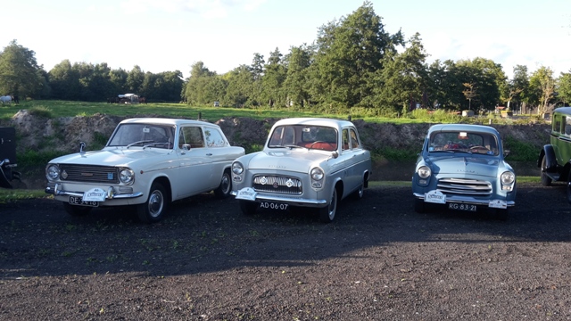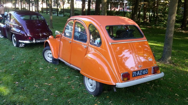 Geert en Geesje halen broodjes kroket en patat en dit gaat er wel in na een dagje toeren. Lekker buiten in de zon voor hun huis laten we de maaltijd smaken en genieten we na van het leuke weekend. Maar het wordt ook tijd om de terugreis aan te vangen. Eerst weer naar Arnhem, Willem thuis afzetten en de auto omwisselen en dan naar Lelystad, Carl thuisbrengen. Rond half elf ben ik thuis in Almere-Haven. Geert en Geesje heel erg bedankt voor de gastvrijheid. We hebben prima geslapen en de rest was ook zeer goed verzorgd. Ook de familie Schmidt wil ik hartelijk bedanken dat we mochten deelnemen aan deze leuke dag. Tot slot Willem natuurlijk nog bedankt, dat hij zijn auto ter beschikking wilde stellen en ons wilde vergezellen dit weekend. ![]() De Anglia is startklaar voor de tweede dag. ![]() Mooie Renault 8. ![]() Speciaal voor Eric een Ascona B. ![]() Toyota. ![]() Tweemaal Mercedes ponton. ![]() Fiat Multipla. ![]() Rover 3.5 LITRE COUPE. ![]() Tatra 603 ![]() Het was een gezellige drukte. ![]() Leuke Eend. ![]() Briefing voor we mogen vertrekken. ![]() Geert en Willem overleggen onderweg. ![]() Pauze bij de Molen. ![]() Audi 100 en DKW. ![]() Chrysler. ![]() Martinitorendrop. ![]() Geert door de bocht. ![]() Een brug die in zijn geheel verticaal omhoog gaat in Aduard. ![]() De muziek heet ons welkom als we terug zijn in Slochteren. ![]() Deze is voor Victoria of Harry zo je wilt. ![]() Triumph en kever. ![]() De borg voor de voorkant. ![]() en van de achterkant ![]() Citroen vrachtwagen. ![]() De Peugeot 403 Familiale is natuurlijk speciaal voor Johan. ![]() En met deze Daf 33 sluiten we het verslag van de zondag af. |