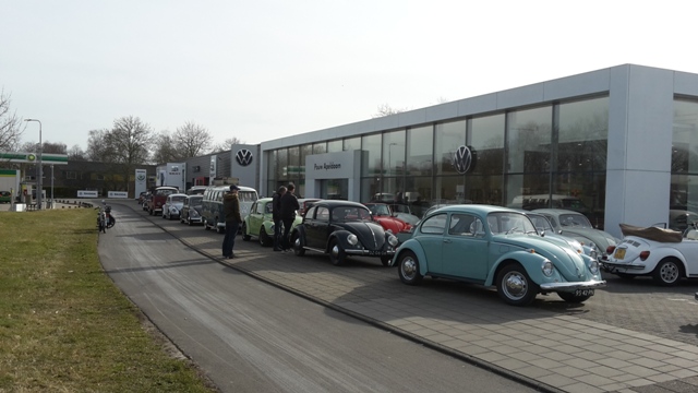 Het klassiekerseizoen 2022 is begonnen! Voor deze toerrit beginnen we bij het eindpunt. Dat klinkt ingewikkeld en het bereiken van het eindpunt was ook best lastig. Een afgesloten weg bij Putten bezorgde ons de nodige hoofdbrekens om bij het eindpunt van de toerrit, Mariahoeve nabij Putten, te komen. Met veel moeite lukte dit, maar onze gast van deze dag, Wilem Range, had ook moeite om bij de Museumboerderij Mariahoeve te geraken, dus het duurde nog even voordat we naar het beginpunt konden rijden. Met twee auto's en drie personen vertrokken we naar garage Pouw in Apeldoorn, waar de toerrit zou starten. Op de weg daar naartoe hadden we het eerste zandpad al te pakken! Bij garage Pouw aangekomen was het al een drukte van belang. Menig LVWCN-er was toe voor een ritje rijden met zijn of haar luchtgekoelde VW. Circa 50 Volkswagens verzamelden zich bij Pouw in Apeldoorn. De koffie met gebak stond al klaar en het weerzien was als vanouds. Deze dag vooral Kevers en gezien het mooie weer, vooral veel Kever Cabrio's. Tweemaal type 3 variant en een enkele bus complementeerde de verzameling. Na een welkomstwoord en een praatje kon de toerrit beginnen. De route ging via Radio Kootwijk naar de uitkijktoren over het Kootwijkerzand, de Sahara van de Lage Landen! De uitkijktoren heeft de toepasselijke naam "Zandloper" en is 13,5 meter hoog. Na dit leuke pauzepunt ging de route verder over de Veluwe via Vierhouten naar het tweede pauzepunt op de hei aan de Stakenbergweg. Hier kregen we een drankje en wat lekkers. Met het mooie weer gelijk een goed moment om bij te praten met de nodige clubleden. Het vervolg van de route bracht ons naar Kasteel Staverden. Het bordje over de hoogte bij de parkeerplaats gaf aan 1.95m. Ik durfde dat niet aan. De hoogte van de Rode Fruitmachine als ie recht staat is 2.05m. Ik ben achter de Brilkever van Bob naar het eindpunt gereden. Bij de Mariehoeve konden we lekker buiten zitten en genieten van een kop snert, een broodje kroket en een drankje. Langzaam kwamen de deelnemers weer binnendruppelen van een mooie en geslaagde toerrit. Heel erg bedankt Ruud en Marian de Ruiter! ![]() Het klassiekerseizoen gaat weer beginnen! De oudjes mogen de stalling uit en het moderne spul kan gelijk de stalling in. ![]() We zijn (eindelijk) bij het eindpunt aangekomen! ![]() Op weg naar het beginpunt al gelijk een onverharde weg. ![]() Het gebak staat al klaar bij garage Pouw in Apeldoorn. ![]() Welkomstwoord door Ruud de Ruiter. ![]() VW T1 in de showroom. ![]() Kever in de showroom bij Pouw. ![]() We gaan vertrekken! ![]() Een goede opkomst. Het mooie weer zal wel meegeholpen hebben. ![]() Vooral veel Kevers. ![]() Pouw! ![]() VW T2a naast VW T2ab. ![]() Nieuwe Taigo in een mooie kleur. ![]() Zandpad nummer twee. ![]() Uitkijktoren de "Zandloper". ![]() Uitzicht over het Kootwijkerzand. ![]() De Sahara van de Lage landen. ![]() VW T1 van de organisatie. ![]() Fraaie origineel Nederlandse Ovaal. ![]() Pauze en bijpraten. ![]() De Trouwe Groene Variant en de Rode Fruitmachine. ![]() Tweemaaal Variant bij het tweede pauzepunt. De rode is van Tiddo Bresters. ![]() Met een hapje en een drankje gezellig bijpraten in een voorjaarszonnetje. Er was hier ook nog een uitkijktoren, maar die hebben we gemist helaas. ![]() Eindpunt. ![]() Iedereen druppelt weer binnen. ![]() Ook nog een mooie Bolletjebus! ![]() Overzicht van het deelnemersveld. ![]() De Cabrio's zijn goed vertegenwoordigd. ![]() De oprit knapt gelijk een heel stuk op als het klassiekerseizoen weer is begonnen! Zo de kop is er af! Er volgt vast nog veel meer moois dit seizoen! |