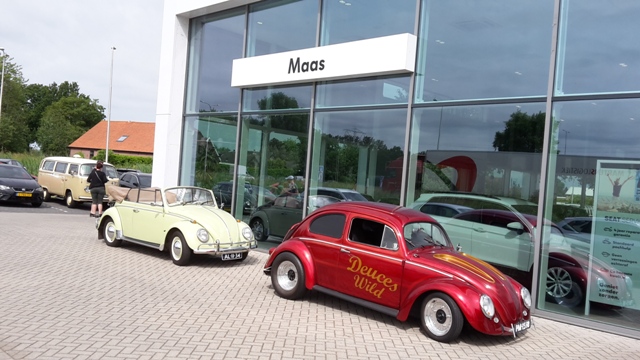 De toerrit van vorige week in en rond Stroe was erg goed bevallen, dus gelijk de week erop maar weer een toerrit. Dit keer een rit van de LVWCN. Carl had de Trouwe Groene Variant een beurt gegeven en die reed weer als vanouds. Dat moet ook wel, want dit jaar is het 60 jaar geleden dat de type 3 op de markt kwam en er staan nog wel een paar type 3-evenementen op de agenda dit jaar. Maar eerst even proefrijden met de Tocht der Lage Landen. De start was bij Volkswagen Maas Autogroep in Woerden. Ik moet zeggen, iedereen had er zin in. Leuk om elkaar weer te zien na een lange tijd. Gelukkig was er genoeg tijd om elkaar te spreken (handen schudden is nog niet de bedoeling!). Met een opkomst van bijna 60 auto’s was de organisatie ook aangenaam verrast. Ja, iedereen is weer toe aan een evenement en een ritje. Nou had Maurits Schouten echt uitgepakt. Niet alleen was er een erg fraaie route uitgezet, Maurits had daar omheen ook nog de nodige leuke zaken uitgedacht. Ook ditmaal hadden we een gast, opnieuw Willem Range. Hij was al op eigen gelegenheid naar Woerden gekomen. De club was om het niet te druk te laten worden in 2 groepen opgedeeld. De eerste groep vertrok om 11:00 en de tweede groep om 11:30. De route was uitgeschreven in een bijzonder duidelijk en mooi boekje, maar mijn navigatietalent was in het afgelopen jaar een beetje roestig geworden, dus we hadden nog wel wat moeite met het vinden van de juiste route. Het eerste punt waar we iets kregen, konden we nog makkelijk vinden. Hier werden bij de plaatselijke bakker, De Echte Bakker Verweij in Linschoten, broodjes uitgedeeld. Daarna liep het wat moeizamer. De route door Linschoten was lastig te vinden en blijkbaar niet alleen door ons. Iedereen moest er weer even inkomen! Uiteindelijk belanden we weer op de goede weg (Ja, ik kan nog wel iets!), op naar Woerdense Verlaat. Hier is in de weilanden een korte excursie voor groep 2. Groep 1 kan alvast bij B&B Hortensia Eiland van Martijn en Anita Kastelein van de lunch genieten. De lunch bestond uit een broodje hamburger, meerdere andere broodjes, zelfgemaakte yoghurt en fruit. Geweldig gewoon! Nadat wij de excursie hadden gedaan werden de groepen gewisseld en konden wij lunchen. Lekker buiten in het zonnetje. Na de lunch nam ik het stuur van de Trouwe Groene Variant ter hand en mocht Carl navigeren. Ook nu was het goed opletten om niet verkeerd te rijden, maar de juiste weg werd iedere keer gevonden. Bij de stijlvolle caravan van Maurits ontvingen we nog een hapje en een drankje. Tot slot arriveren we na mooie rit van circa 65 kilometer bij het eindpunt, B&B Taart en Tuin. Ook hier, lekker buiten, van een hapje en een drankje genoten. En ook hier meer dan genoeg ruimte. Maurits heel erg bedankt voor de geweldige dag en fantastische toerrit. Echt heel leuk gedaan! We hebben genoten. ![]() Bij Volkswagen Maas Autogroep in Worden. ![]() De eerste groep vertrekt. ![]() Pauzepunt bij de excursie. ![]() Driemaal Karmann Ghia cabriolet in de Nederlandse kleuren. ![]() Uitleg over het gebied en de boeren in de omgeving. ![]() Wat een rust. ![]() Pauzepunt bij B&B Hortensia Eiland. ![]() Ruime parkeergelegenheid. ![]() Fraaie Brilkever. ![]() Langzaam druppelt iedereen binnen voor de lunch. ![]() Hier groep 1. ![]() Lekkere lunch, bij een lekker zonnetje in de tuin. ![]() Kever 1300 en 1200. Zoek de verschillen. ![]() Variant en Fastback. ![]() Korte stop bij deze fraaie caravan. (FOTO GELEEND VAN FACEBOOK) ![]() Flesje Appels en Vlierbessensap, gekregen onderweg bij de caravan van Maurits. ![]() Eindpunt B&B Taart en Tuin. ![]() Hapjes en drankjes bij het eindpunt ![]() Lekker parkeren maar weer. ![]() Tweemaal Fastback. ![]() T2a. ![]() De laatsten komen ook aan bij het eindpunt. ![]() Keverveld. ![]() Tweemaal Kever. ![]() Met liggende en staande koplampen. ![]() Sybe Smid staat mooi met zijn T1 bij de schuur. ![]() We genieten na met een hapje en een drankje. |