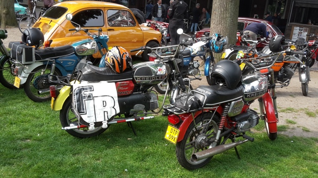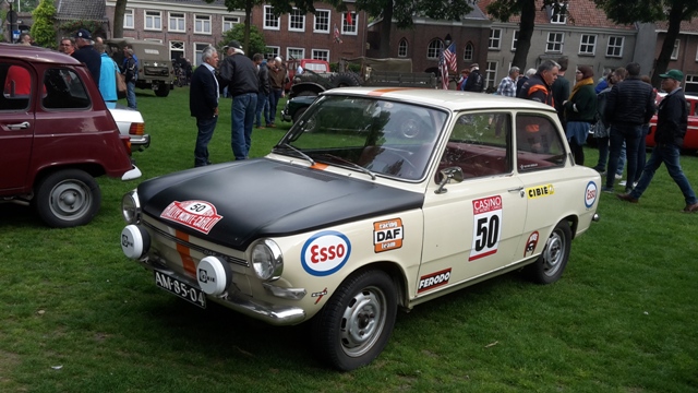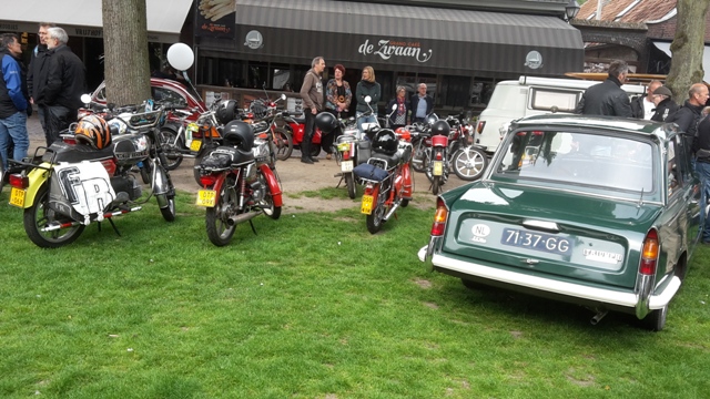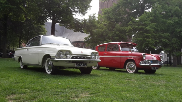 Een bont gezelschap aan oud ijzer verzamelde zich op het Vrijthof. Brommers, motoren, auto’s en zelfs vrachtwagens deden mee. Tussen 10:00 en 11:00 vertrokken de deelnemers voor de toerrit. Deze ging langs Oirschot, waar we nog even stopten voor een foto bij de stoel. Het normale formaat staat bij mijn ouders aan de eettafel. Bij d'n Hut was er de gelegenheid voor een pauze. We nuttigden hier met mede-EFCN-ers een kopje soep of 2 kroketten met brood. Carl en ik besloten na het pauzepunt voor de lange route te gaan. Een goede keuze, want de voorgestelde route ging langs schitterende wegen en mooie natuur. Mooi op tijd melden we ons weer op het Vrijthof. Na nog gezellig nagepraat te hebben konden we voldaan en tevreden de terugreis aanvagen. Om half zeven stond de pick-up weer in de stalling en konden we terugkijken op een zeer geslaagde dag. ![]() De auto van een van de organisatoren. Ach daar past onze pick-up wel bij! ![]() Taunus versus Cortina. ![]() Duits tegen Engels. ![]() Er zijn dit jaar anderen die met een vrachtwagen zijn gekomen, een mooie MAN ex-leger. ![]() Toch ook een DAF vrachtwagen, een YA 126. ![]() Straatje langs het Vrijthof. ![]() Peugeot 404 break/familiale. ![]() ![]() Een diesel. ![]() Anglia 105E van van Beusekom. ![]() Fiat 600's. Let op het kenteken van de rode en de donkergele. ![]() Fiesta van Ernst Visser. ![]() Renault. ![]() Naast de Triumph Herald staan de nodige brommers. ![]() Ongewassen Eend. ![]() Brommers, brommers, veel brommers. ![]() ![]() DAF 55. ![]() Daf 33. ![]() Consul Capri van Piet Sneeuw en Anglia 105E van Jos en Mieke Wouters. ![]() Frans en Marijke Verhagen vertrekken voor de toerrit. ![]() In Oirschot bij de stoel. ![]() ![]() ![]() Bij het pauzepunt d'n Hut ![]() Afdeling Tweede Wereldoorlog legertrucks. ![]() BMW 2002. |