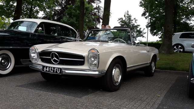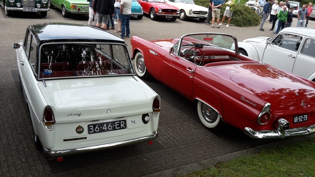 Het is weer tijd voor een ritje tussendoor. Niet een toerrit van een van de clubs waar we lid van zijn, maar een rit georganiseerd door goede bekenden van ons, Bart en Erica van den Brink. Wim van den Brink zou De Rode Fruitmachine in beton gieten, dus Carl en ik zaterdag 4 juni naar Stroe met 2 auto's. Onderweg even stoppen op het industrieterrein van Harderwijk, want De Rode Fruitmachine zou klokje rond gaan. Daarna door naar Stroe. Bij Wim aangekomen stonden al 2 oldtimers klaar, een DAF 55 Marathon en een Cortina 1600. Wij mochten met de fraaie oranje DAF op stap. Het beginpunt van de rit was midden in Stroe. Circa 50 klassiekers van allerlei merken en modellen verzamelden zich hier. Rond 12:30 was het tijd om te starten. De route ging over de Veluwe. In Vierhouten maken we een korte stop bij Gerrit Verhulst, waar we opnieuw met een DAF aankomen. Eerder stonden we hier al met onze vrachtwagen. Halverwege de route was er een pauze in Heerde bij Classic Cars en Dijkstra Classics. Hier kregen we niet alleen wat te drinken en iets lekkers, maar konden we ons ook vergapen aan een collectie leuke klassiekers. Het tweede deel van de rit ging door de bossen nabij Nunspeet, waar we de route op een gegeven moment een beetje bijster waren en de tankmeter steeds verontrustende signalen af gaf. In Nunspeet maar even de tank van de DAF volgegooid en daarna hadden we vrij vlot de route weer teruggevonden. Vlak voor Stroe was het eindpunt bij Rijkszaadeest. Hier kregen we niet alleen een drankje, maar ook een rondleiding door het authentieke pand, waar vroeger denneappels werden gedroogd voor de zaden, waarmee de bossen op de veluwe weer werden aangevuld. Al met al een hele leuke dag en Wim heel erg bedankt dat we een dagje mochten rijden in je DAF 55 Marathon. Het is een fijn rijdende klassieker. ![]() kilometerstand 99999,9. ![]() Stoppen voor een foto. ![]() En 100 meter verder, 00000,0. ![]() De pick-up bij Wim onder de overkapping. ![]() Wim en zijn vrouw gaan met de Cortina en Carl en ik met de DAF. ![]() Mooie Pagode. ![]() De auto heeft als bouwjaar 1969, maar is een 230SL. Dat is vreemd en de achterlichten, wieldeksels en spiegels zijn van een 280SL. ![]() Leuke DAF 33 uit 1967. ![]() Nog meer leuke origineel Nederlandse klassiekers. Opel Kadett uit 1974 en NSU Prinz uit 1970. ![]() BMW 2002 uit 1975. ![]() Mercedes-Benz 170V uit 1956. ![]() Peugeot 203 eveneens uit 1956. 1956 is een populair bouwjaar deze dag! ![]() VW Golf uit 1983. ![]() Kampeerbus van de familie Van den Brink. ![]() Nog een leuke Golf, een diesel uit 1982. ![]() Overzicht van het startpunt. ![]() Volvo Amazon uit 1965. ![]() Start van de rit. ![]() Even gedag zeggen bij Gerrit Verhulst in Vierhouten. ![]() We zijn de weg even kwijt, maar weten de route snel weer op te pikken. ![]() Tussenstop in Heerde. ![]() Leuke Polo en die is te koop. ![]() De neuzen van Snoeken. ![]() Mooie Scania uit 1969. ![]() Peugeot 403 break uit 1961 en daarnaast een origineel Nederlandse Chevrolet Chevelle uit 1966. ![]() Opnieuw de Volvo en de BMW. ![]() Leuke Austin uit 1960. ![]() Clubje DAF's. ![]() Lincoln Premiere Coupe uit 1956. ![]() Zie je ook niet vaak. ![]() Onderweg eten we nog even een ijsje. ![]() Carl en Jos en de DAF 55 Marathon. ![]() Het drogen van denneappels. ![]() In het mooie gebouwtje van Rijkszaadeest in Stroe. ![]() Hier was tevens het eindpunt van de toerrit. |